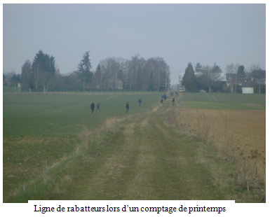 Cette méthode est pratiquée du 1er au 30 mars car la plaine cultivée n’est pas encore trop développée et le comptage nous donne des résultats après chasse et avant reproduction.